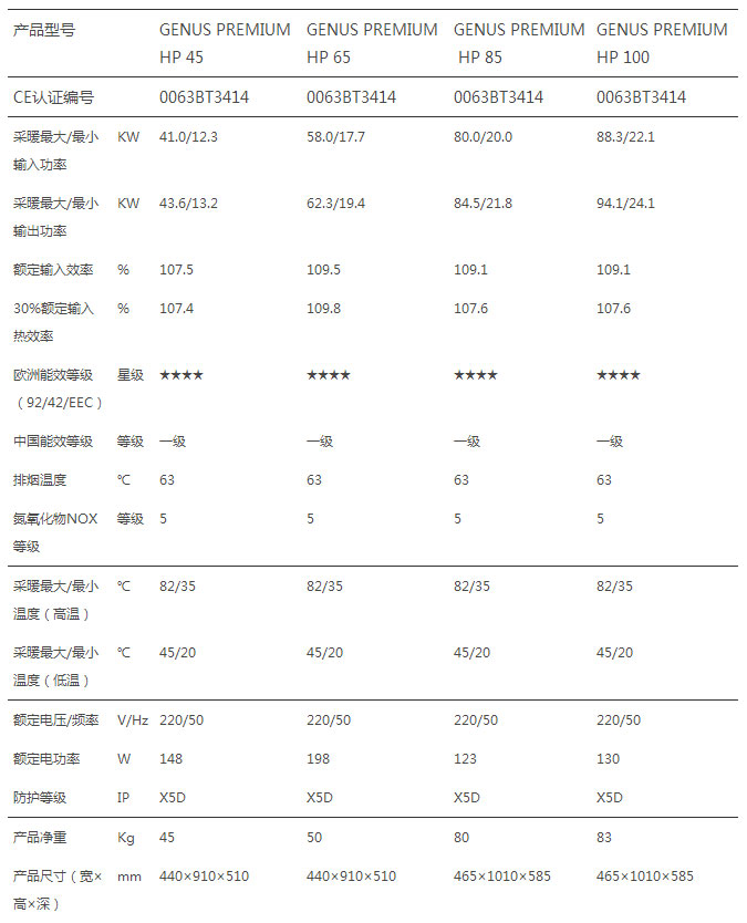 - 全預(yù)混變頻燃燒,調(diào)節(jié)比1:5,效率高達(dá)109.8%